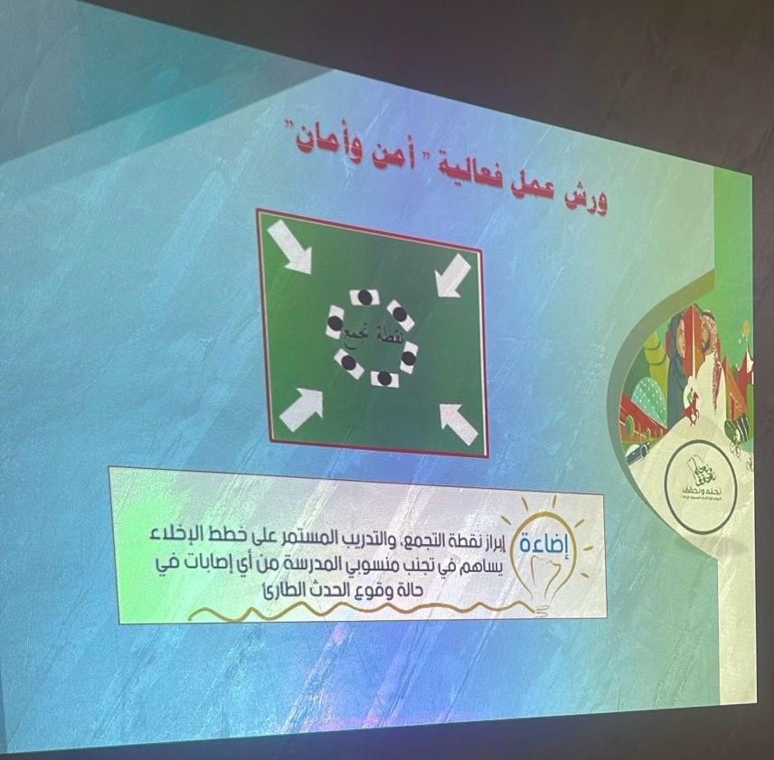 عقدت الإدارة العامة للتعليم بمحافظة الطائف لطالبات المرحلتين الثانوية والمتوسطة ورش عمل "أمن وأمان" تزامنًا مع فعاليات الاحتفال ⁧‫باليوم الوطني السعودي الـ 94 ‬⁩، والتي ينفذها قسم الأمن والسلامة حضوريًا في الثانويتين الأولى والرابعة، والمتوسطة الثامنة. تهدف ورش العمل إلى إكساب الطالبات مهارات التعامل مع الأزمات والطوارئ والكوارث؛ لتحقيق بيئة آمنة وجاذبة. ‏⁧‫ دارت الورش حول خطط الإخلاء، و الهدف من تنفيذ خطط الاخلاء الافتراضية، والتعرف على الحالات التي تستوجب إخلاء المنشأة التعليمية، كذلك التعرف على متطلبات خطط الإخلاء والتعامل معها، والشروط الواجب توافرها لنجاح خطط الإخلاء وقت الطواريء والأزمات، ومعرفة تعليمات خطط الإخلاء للموظفين والطلاب، كما تضمنت الورش الوقوف مراحل الإخلاء ( قبل وأثناء وبعد ) وإجراءات وبروتوكولات وقواعد الإخلاء الأساسية، مع محاكاة لخطط إخلاء افتراضية من خلال مشاهدة عدة مقاطع فيديو.
