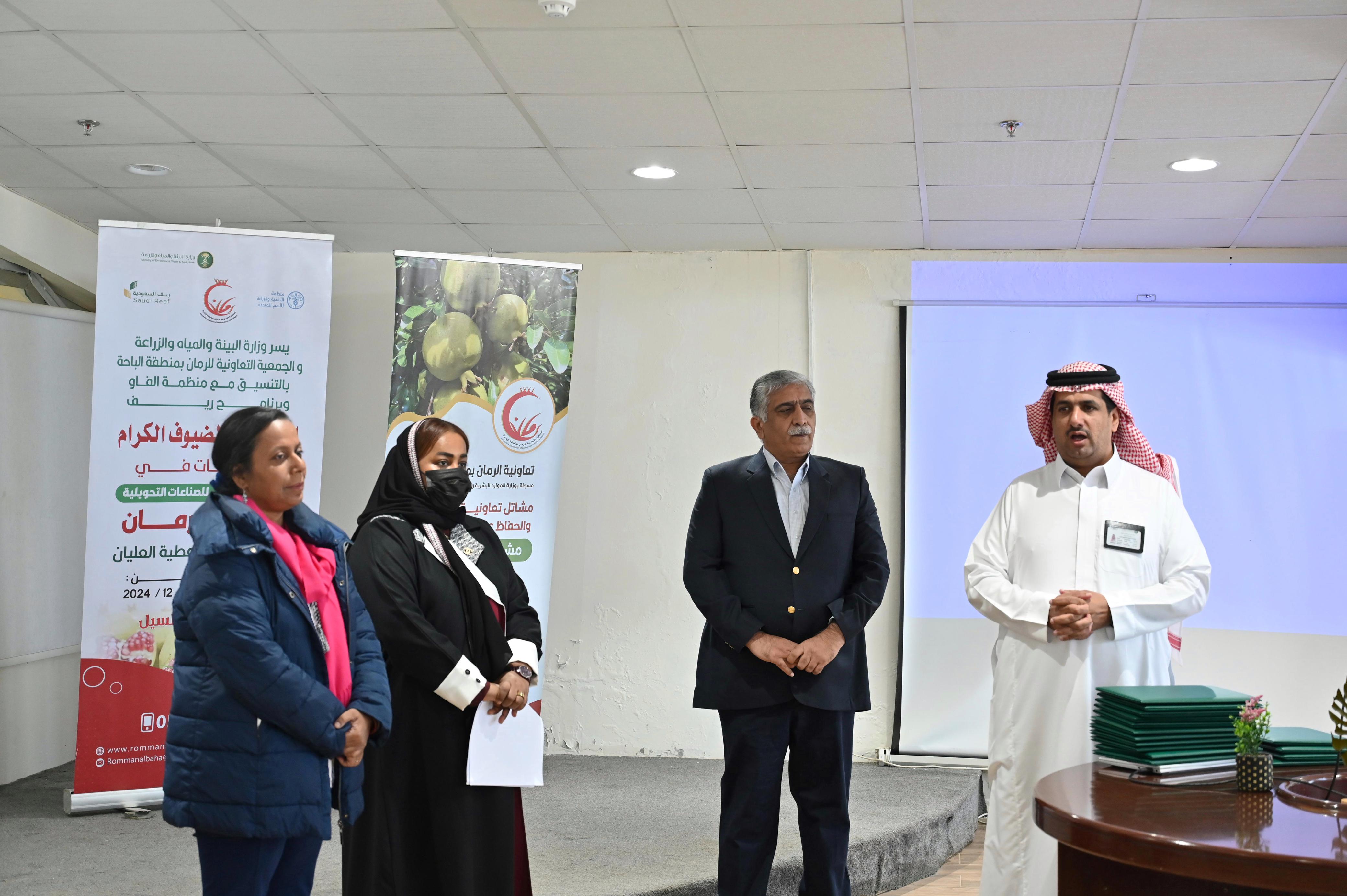 اختتم فرع وزارة البيئة والمياه والزراعة بمنطقة الباحة برنامجًا تدريبيًا استهدف 15 امرأة ريفية، بهدف تعزيز قدراتهن في مجال الصناعات التحويلية باستخدام منتجات الرمان، الذي يُعد من المحاصيل الزراعية المميزة في المنطقة.