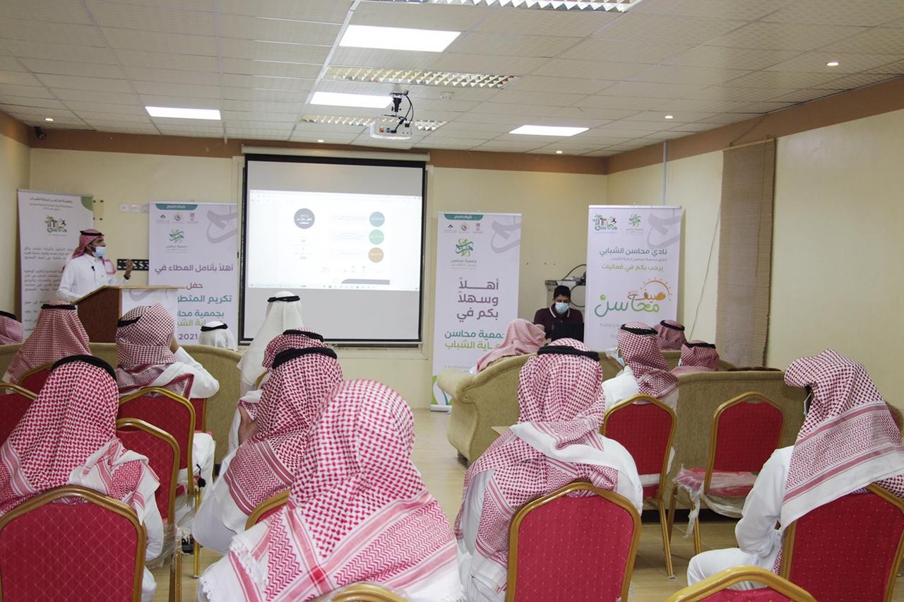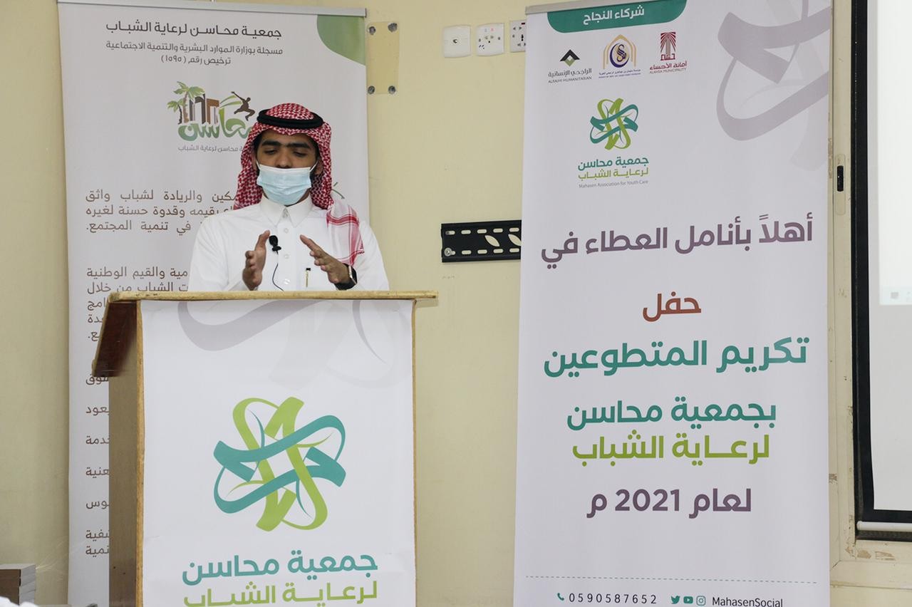 كرم رئيس مجلس إدارة جمعية محاسن لرعاية الشباب محمد المقهوي وعدد من أعضاء مجلس الإدارة والمدير التنفيذي للجمعية عبد الله الربيعة، المتطوعين المشاركين في برامج وأنشطة الجمعية خلال النصف الأول من عام 2021 م، في حفل أقيم في مقر الجمعية.