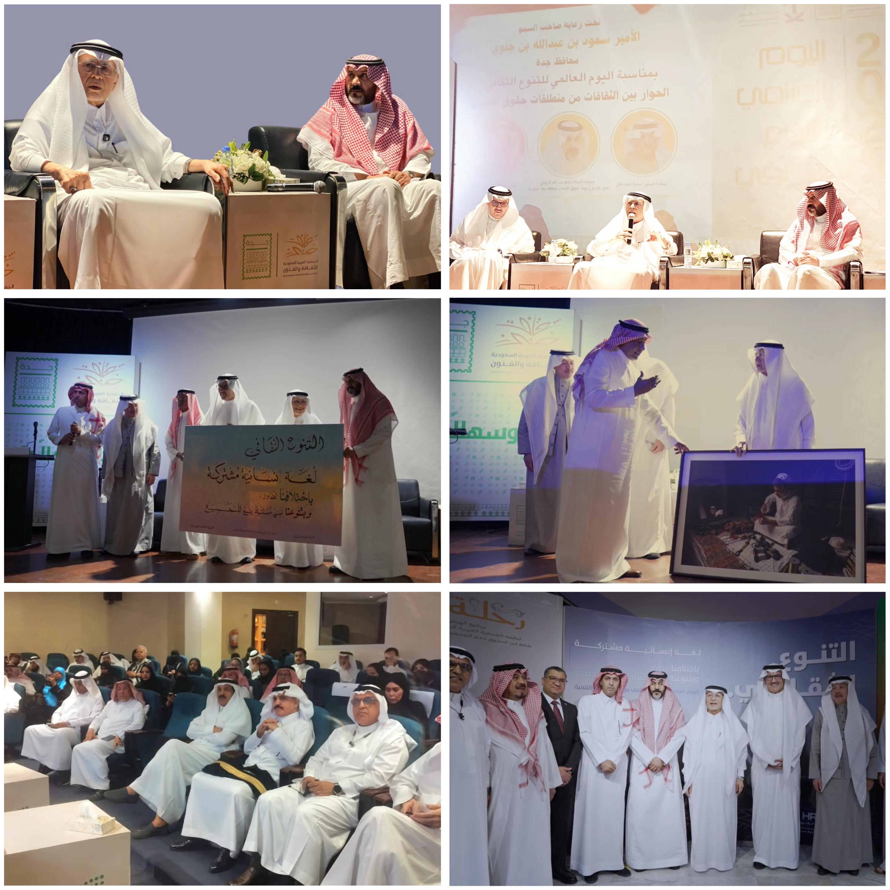 برعاية كريمة من صاحب السمو الأمير سعود بن عبدالله بن جلوي، محافظ جدة، نظّمت جمعية الثقافة والفنون بجدة بالتعاون مع فرع هيئة حقوق الإنسان بمنطقة مكة المكرمة، أمسية ثقافية بمناسبة اليوم العالمي للتنوع الثقافي، تحت عنوان: "الحوار بين الحضارات من منطلقات حقوق الإنسان"، وذلك بحضور نخبة من المسؤولين والمثقفين والفنانين والمهتمين بالشأن الثقافي والإنساني.