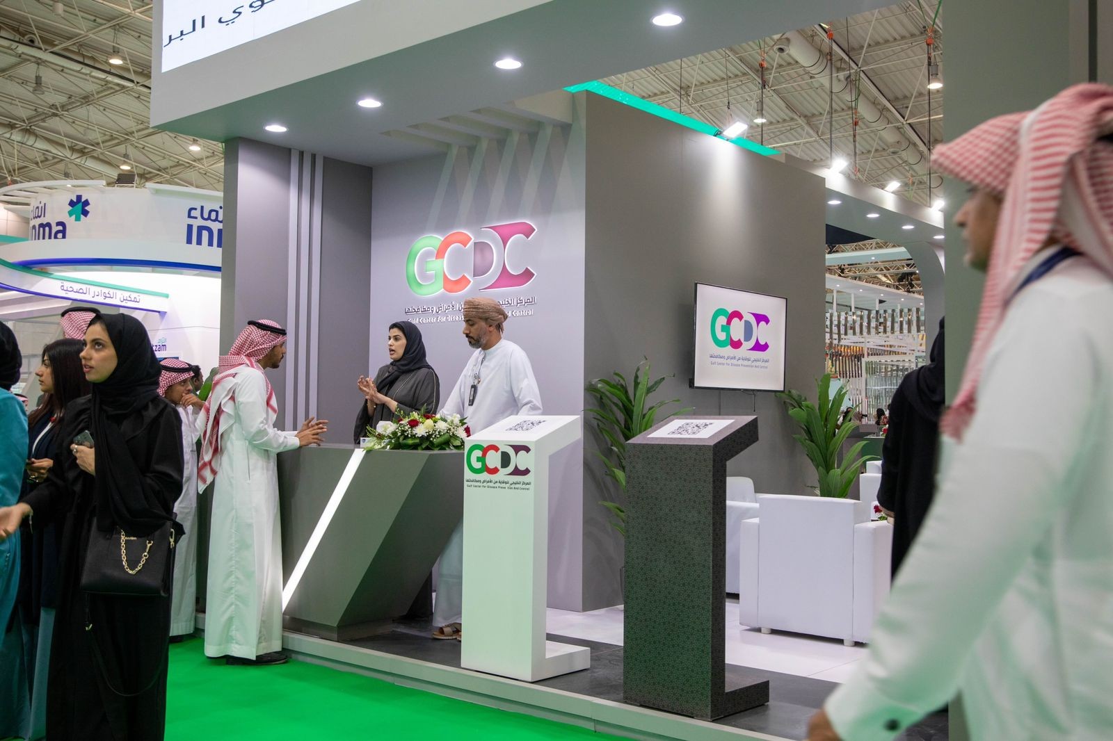 وبعد ذلك استقبل جناح المجلس العديد من الزوار من مختلف دول العالم وقدم لهم تعريفاً بالمجلس وبداياته وتبعيته ورسالته وأهدافه كما تم شرح المرتكزات الاربع التي يقوم عليها المجلس وهي ( الوقاية ، التوعية ، التطور، الدعم الصحي) ، إضافة إلى تقديم شرح حول برامج المجلس منها برنامج فحص الوافدين، والتسجيل المركزي والشراء الموحد الخليجي، إضافة إلى المركز الخليجي للوقاية من الأمراض ومكافحتها.