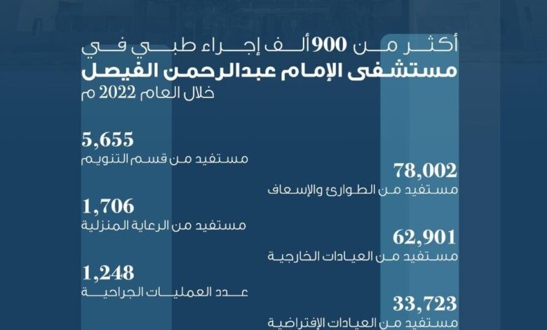 مستشفى الإمام الفيصل يقدم أكثر من 900 ألف إجراء طبي للمستفيدين