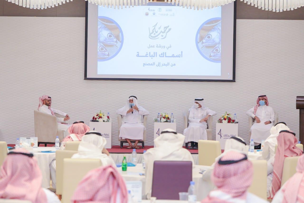 إنعقدت ورشة عمل ( أسماك الباغة من البحر الى المصنع ) والذي نظمته غرفة جازان، بالتعاون مع فرع وزارة البيئة والمياه والزراعة، والهادفة الي تطوير القطاع السمكي وعرض فرص الاستفادة إقتصادياً واستثماريا من تصنيع أسماك الباغة ( الماكريل ) في جازان ، وتم استعراض الدارسات العلمية التي قدمها المختصين من جامعة الملك عبد الله للعلوم والتقنية وجامعة الامير نورة حول اسماك" الباغة" وإمكانية تصنيعها .