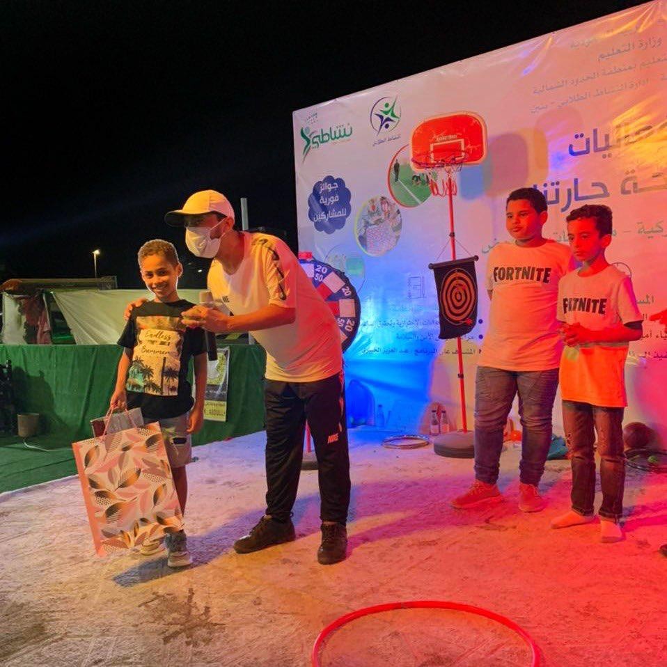 نفذت إدارة النشاط الطلابي بنين في الإدارة العامة للتعليم ⁧‫بمنطقة الحدود الشمالية‬⁩؛ برنامج بعنوان  ساحة حارتنا ضمن فعاليات ⁧‫ نشاطي‬⁩ لصيف١٤٤٢هـ، على مدار يومين في المسطحات الخضراء، بمدينة عرعر شملت العديد من المسابقات الشعبية والحركية والرسم الحر والعروض المسرحية وتقديم الجوائز للفائزين. لتعزيز القيم الوطنية والتربوية واستثمار طاقات الطلاب والطالبات وأوقاتهم من خلال تقديم هذه البرامج الممتعة والمشوقة لتلبي حاجاتهم واهتماماتهم وتكسبهم خبرات ومهارات علمية واجتماعية وثقافية ورياضية، إضافة إلى المهارات الحياتية التي تسهم في بناء شخصية سوية معتزة بدينها ووطنها ونفسها” .