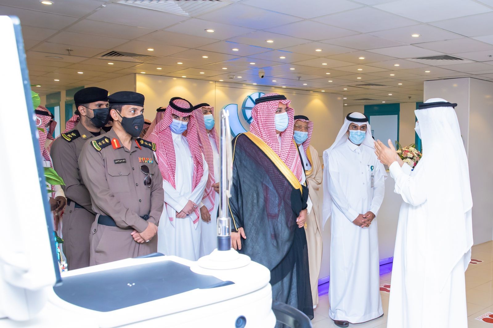 وفور وصول سمو المحافظ استمع لشرح مفصل عن المستشفى وما يحويه من خدمات وأقسام لخدمة المرضى.