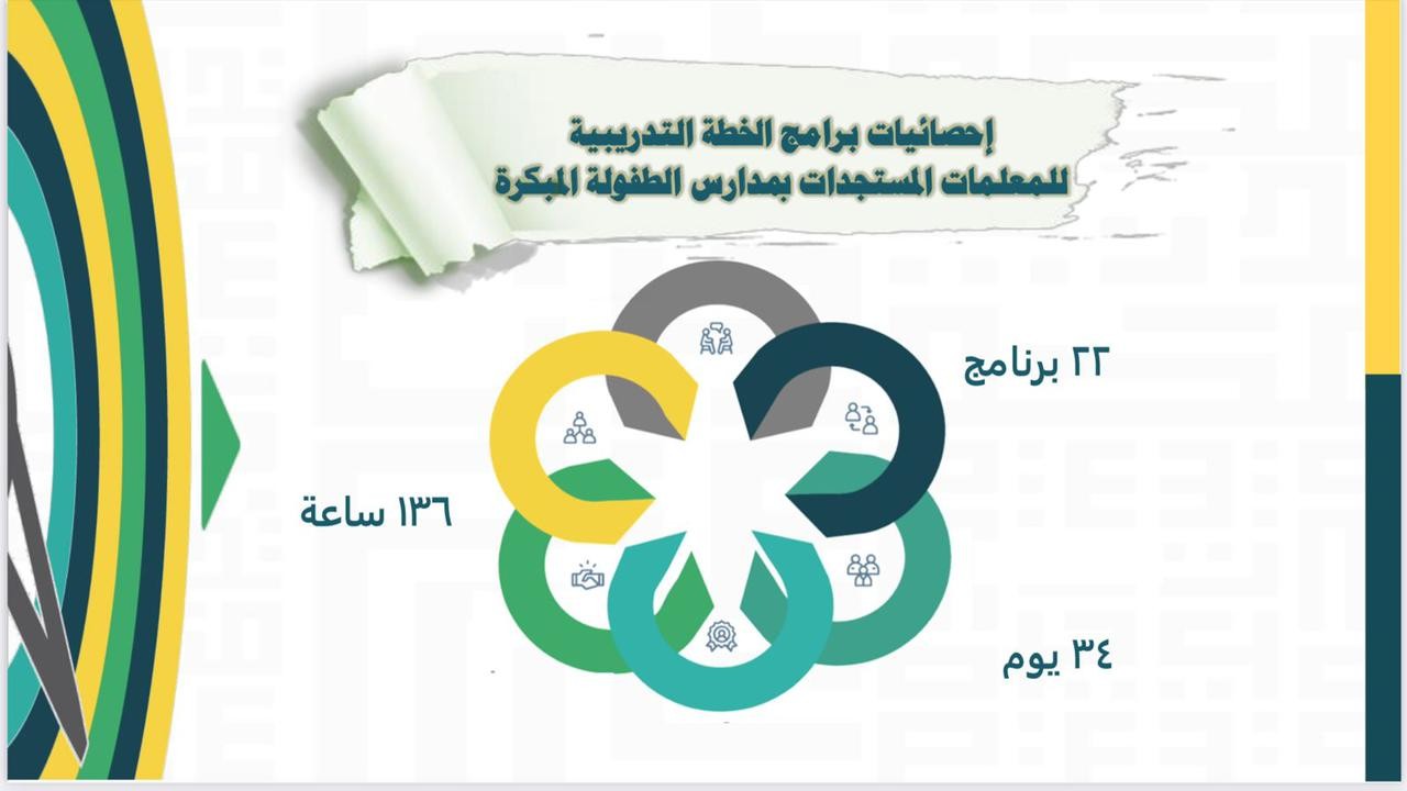 يجدر بالذكر أن الخطة استهدفت 613 معلمة مستجدة في مداس الطفولة المبكرة وقد وصل عدد الحضور في اليوم الأول 410 معلمة تم تدريبهن وفق أفضل الممارسات التدريبية العالمية عبر قاعات افتراضية باستخدام  ZOOM