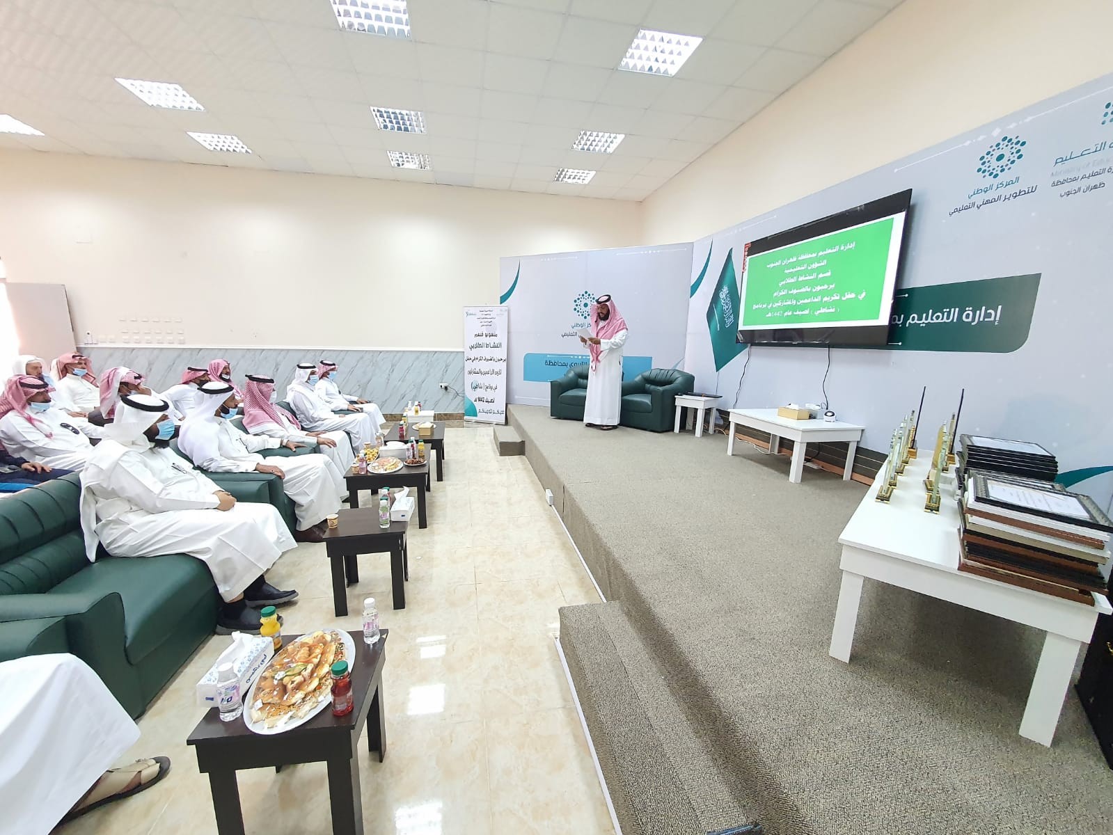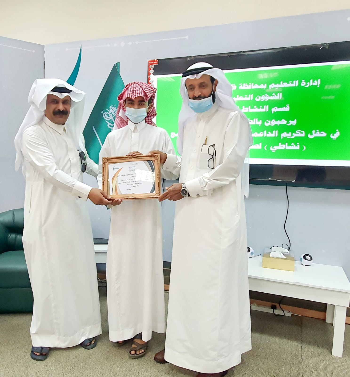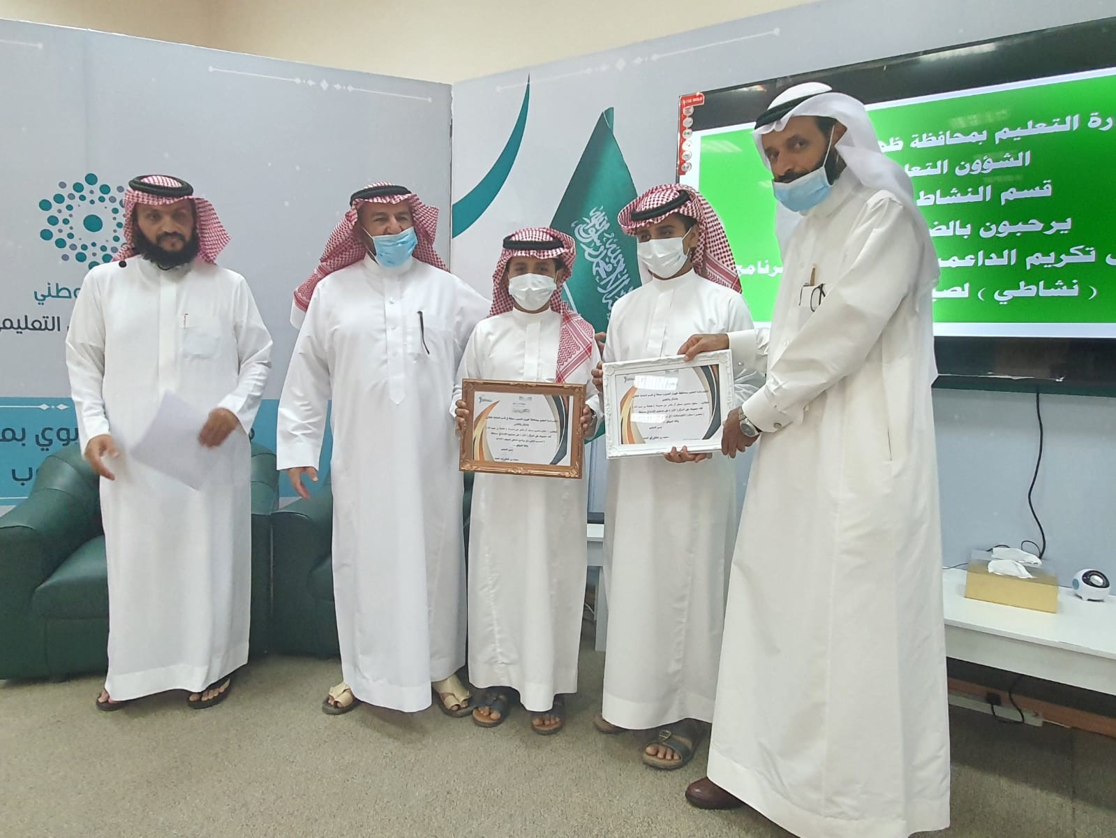 كرم سعادة مدير التعليم بمحافظة ظهران الجنوب الأستاذ سعيد بن هباش أبوحديد صباح اليوم الثلاثاء ١٤٤٣/١/٣٠ الطلاب الفائزين في برامج وفعاليات برنامج نشاطي والذي أُقيم صيف ١٤٤٢ بحضور رئيس بلدية المحافظة الأستاذ عوض بن سعيد آل سياف والمساعد للشؤون التعليمية رئيس لجنة التنمية الاجتماعية والمساعد للشؤون المدرسية بإدارة التعليم ومدير الخدمات العامة في البلدية الأستاذ محمد أحمد ابوحديد وأولياء أمور الطلاب.
