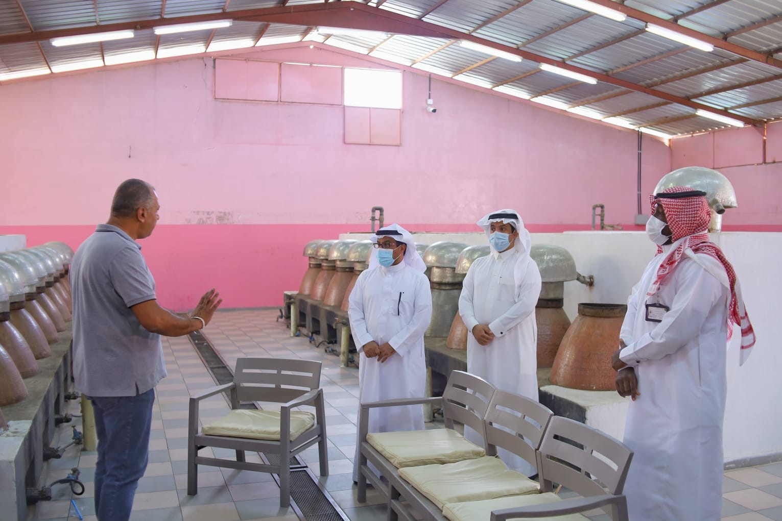 وقد بدأت الزيارة بالوقوف على سد عشران بأبها والمزارع الواقعة على إمتداد الوادي, وكذلك مشروع قرية العكاس ، تلا ذلك الوقوف على مزرعة آل عثمان للورد الطائفي بمدينة أبها والإطلاع على تجربة المزرعة في الإستفادة من المياه المجددة في الري ، ثم زيارة محطة معالجة المياه بمحافظة خميس مشيط واستعراض مراحل إنتاج المياه المجددة في المحطة والكمية المنتجة يومياً وطرق الإستفادة منها حاليا إضافة إلى الخطط المستقبلية للإستفادة من تلك المياه ، بعدها تم الوقوف على مزرعة آل مثيب بمحافظة خميس مشيط والإطلاع على تجربتهم في الإستفادة من المياه المجددة في ري المحاصيل الزراعية.