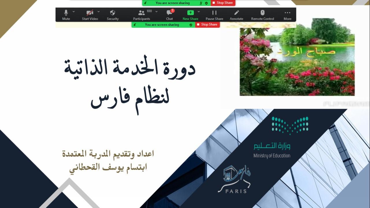 نفذت الإدارة العامة العامة للتعليم بمنطقة مكة المكرمة ممثلة نظام فارس دورة تدريبية بعنوان "الخدمة الذاتية لنظام فارس"، وذلك ضمن برامجها التقنية ( التقنية الحديثة ) الخاصة بالتحول الرقمي التي تتماشى مع رؤية الدولة 2030 ، نفذتها المدربة ابتسام القحطاني اليوم الخميس الموافق 2/2/1443هـ بمركز التدريب الأول .