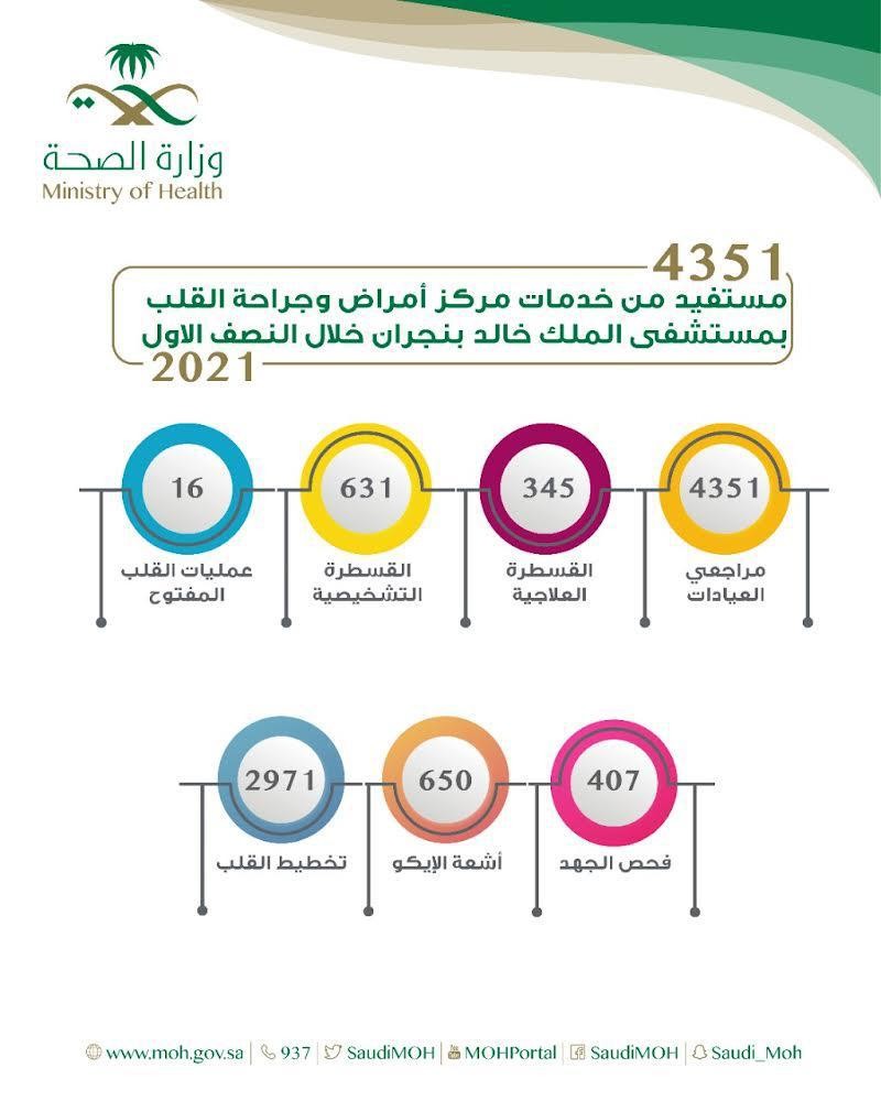 وبينت صحة نجران أن العمليات شملت إجراء 16عملية قلب مفتوح إضافة إلى 976 عملية قسطرة منها 631 قسطرة تشخيصية و345 قسطرة علاجية .