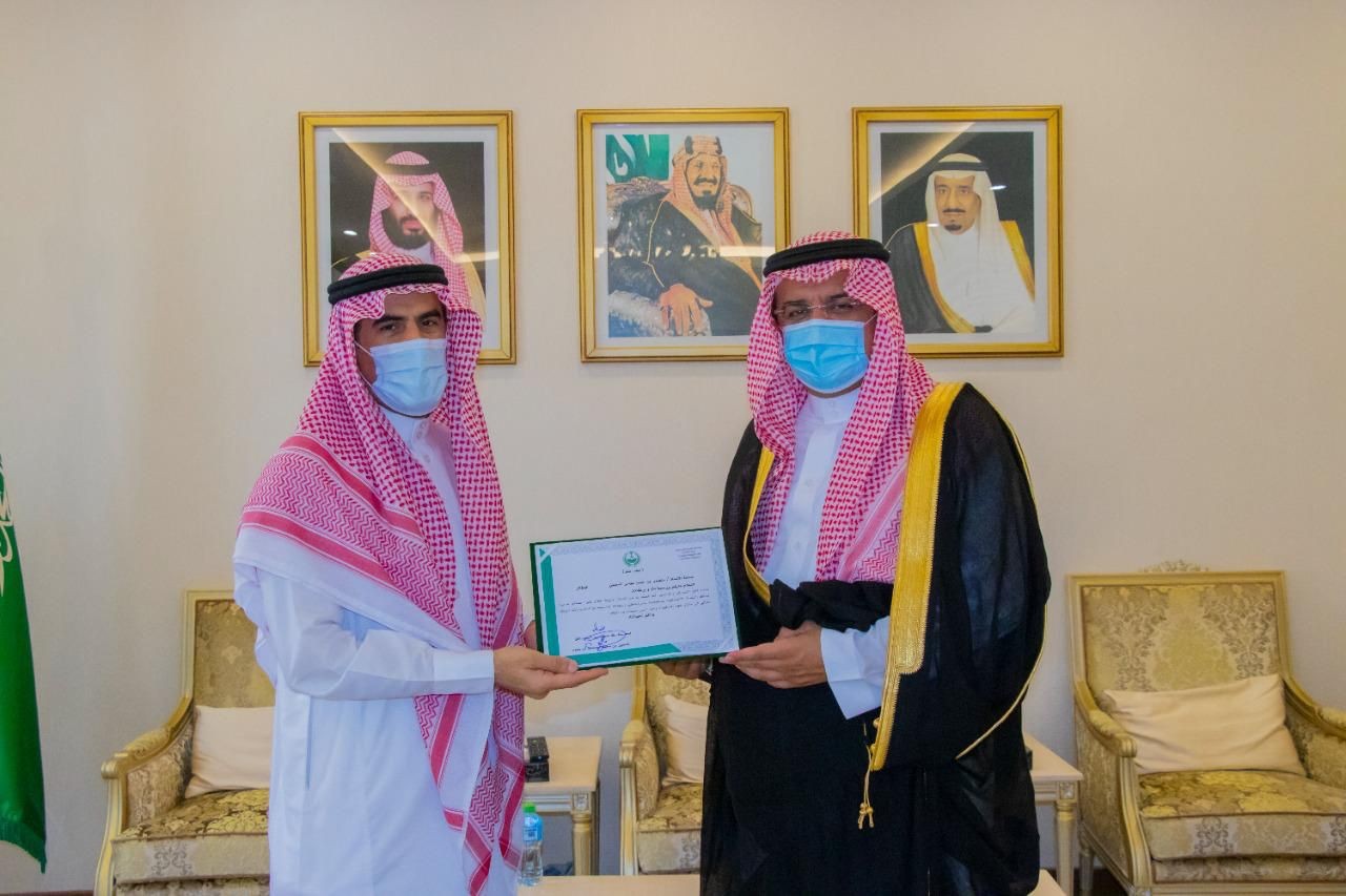 هذا وقد أشاد سموه بالجهود التي قام بها المصلي خلال فترة عمله بالبنك، كما نوه سموه بنتائج المشاريع التي مولها البنك والمهام والأعمال الريادية والدعم المقدم للريادين بالمحافظة ، وفي نهاية اللقاء قدم سمو المحافظ شهادة شكر للمصلي تقديرا لعمله بالمحافظة متمنيا له التوفيق في عمله المستقبلي .