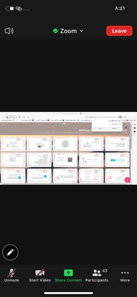 مكة المكرمة - أحمد العثماننفذت الإدارة العامة للتعليم بمنطقة مكة المكرمة ممثلة في مكتب تعليم شرق مكة برنامجًا تدريبيًا بعنوان "أصمم بإبداع مع canva وكيفية توظيفه في العمل" ، يومي الأربعاء والخميس الموافق 8- 1443/2/9هـ ، نفذته المدربة تهاني سليمان العنزي عن بعد عبر برنامج الزوم بقاعة (105) بمركز التدريب الخامس بالتعاون مع وحدة تطوير الموارد البشرية وذلك بإشراف مديرة المكتب أمل باجابر.