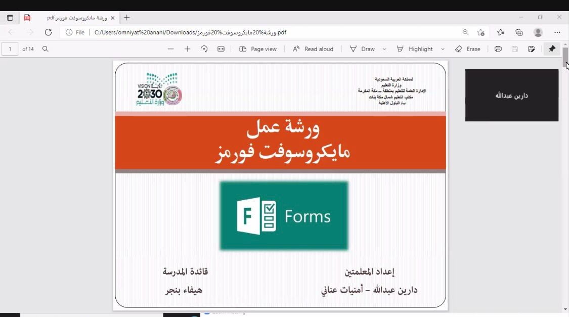 ورشةً تدريبيةً بعنوان (مايكروسوفت فورمز) نفذتها ابتدائية البتول الأهلية