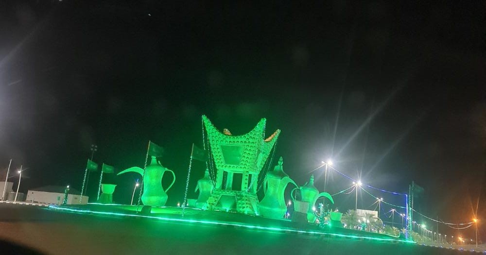 وقد احتوت البلدية بتنفيذ عدد من اللوحات متضمنه عبارات التهاني والتبريكات للقيادة الرشيدة باليوم الوطني الـ 91 ، بالإضافة إلى عدد من الأعلام موزعة على مداخل و مخارج عدداً من الطرق .