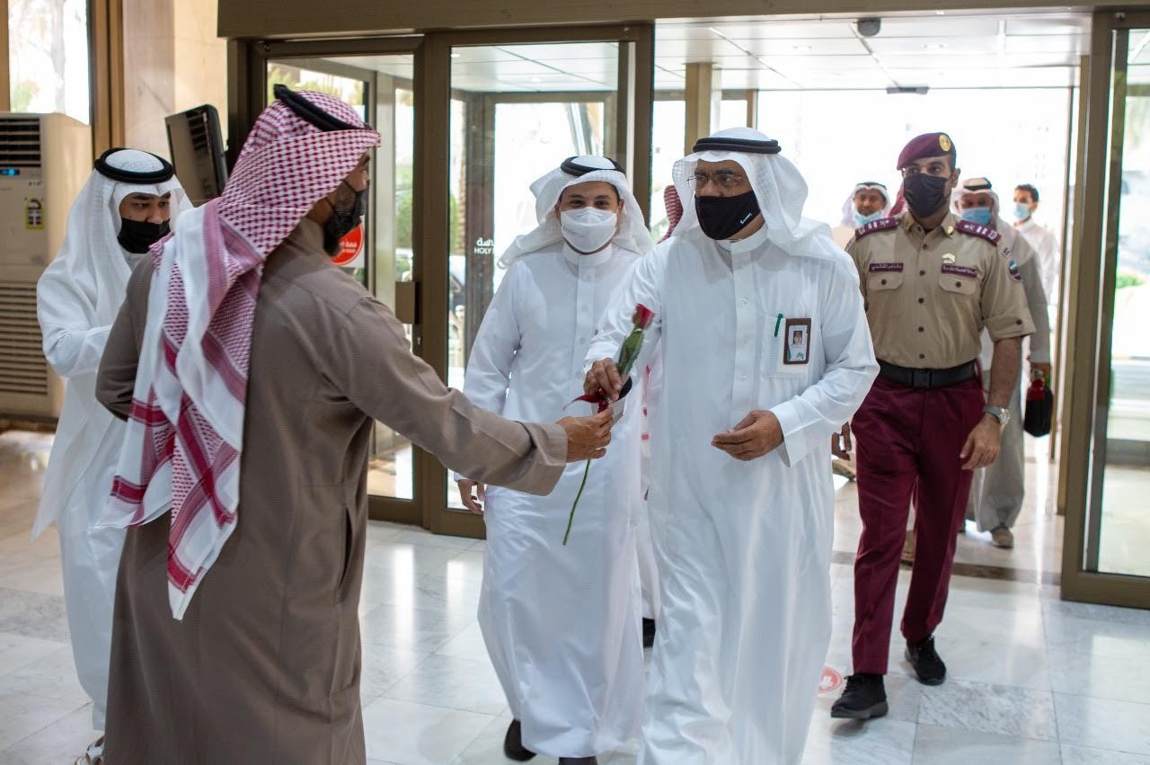و مراجعيها ، حيث نظّمت إدارة العلاقات العامة والإتصال المؤسسي مواقع متفرقة بالأمانة لاستقبال منسوبي الأمانة ومراجعيها بالورد والشوكولاتة وأعلام وهداية عينية وأوشحة تحمل شعار #هيلنادار ليحتفل الجميع بفرحة اليوم الوطني، فيما شارك معالي أمين العاصمة المهندس محمد بن عبدالله القويحص والوكلاء الموظفين والموظفات في جدارية لوحة (مشاعر ولاء) نُثر فيها مشاعر الوفاء والحب للوطن الغالي.