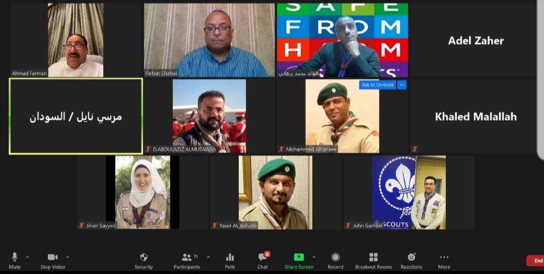 عقدت اللجنة الكشفية العربية الفرعية لتنمية القيادات ، اليوم اجتماعها الثاني عشر افتراضياً برئاسة نائب رئيس اللجنة محمد الهنائي ، وبحضور نائب المدير الإقليمي مدير إدارة الطرق التربوية رفعت السباعي ، حيث استعرض الاجتماع النقاط المُدرجة على جدول الأعمال واتخذ بشأنها القرارات والتوصيات اللازمة ومن أهمها استعراض نتائج ملتقى تنمية قدرات مساعدي مفوضي تنمية القيادات الذي عُقد خلال الفترة من 25 الى 31 مارس2021 ، واستعراض خطة أنشطة شهري ابريل ومايو 2021، وتحديد جدول اعمال اجتماع مفوضي التدريب وتنمية القيادات بالجمعيات المزمع عقده يوم السبت القادم ، وأطلعت اللجنة على نتائج ملتقى تنمية قدرات مساعدي مفوضي تنمية القيادات الذي عُقد خلال الفترة من 25 الى 31 مارس2021، كما أطلع أعضاء اللجنة على الأنشطة العربية للراشدين في الكشفية والحماية من الأذى خلال شهري ابريل ومايو 2021، واكدت اللجنة على أهمية استمرار إدارة تنمية القيادات بالإقليم الكشفي العربي في التعاون ودعم الجمعيات الكشفية العربية التي شرعت[RES1] في تنفيذ خدمات الحماية من الأذى والراشدون في الكشفية ، ومهرجان الأفلام للموضوعات الكشفية التدريبية خلال شهر ابريل 2021، و نشر قوائم كفاءات الشارة الخشبية وضوابط تنظيمها وشروط المشاركة فيها على الجمعيات الكشفية العربية خلال شهر ابريل 2021، بعد تصميمها واخراجها، وورشة عمل تنظيم وإدارة وتقييم الجلسة التدريبية، على ان يقوم نائب رئيس اللجنة بتطوير المقترح بعد ملاحظات تقديم العروض الشخصية، خلال شهر مايو 2021، و الاتفاق على موضوعات جدول اعمال الاجتماع الثامن لمفوضي التدريب وتنمية القيادات بالجمعيات الكشفية العربية.