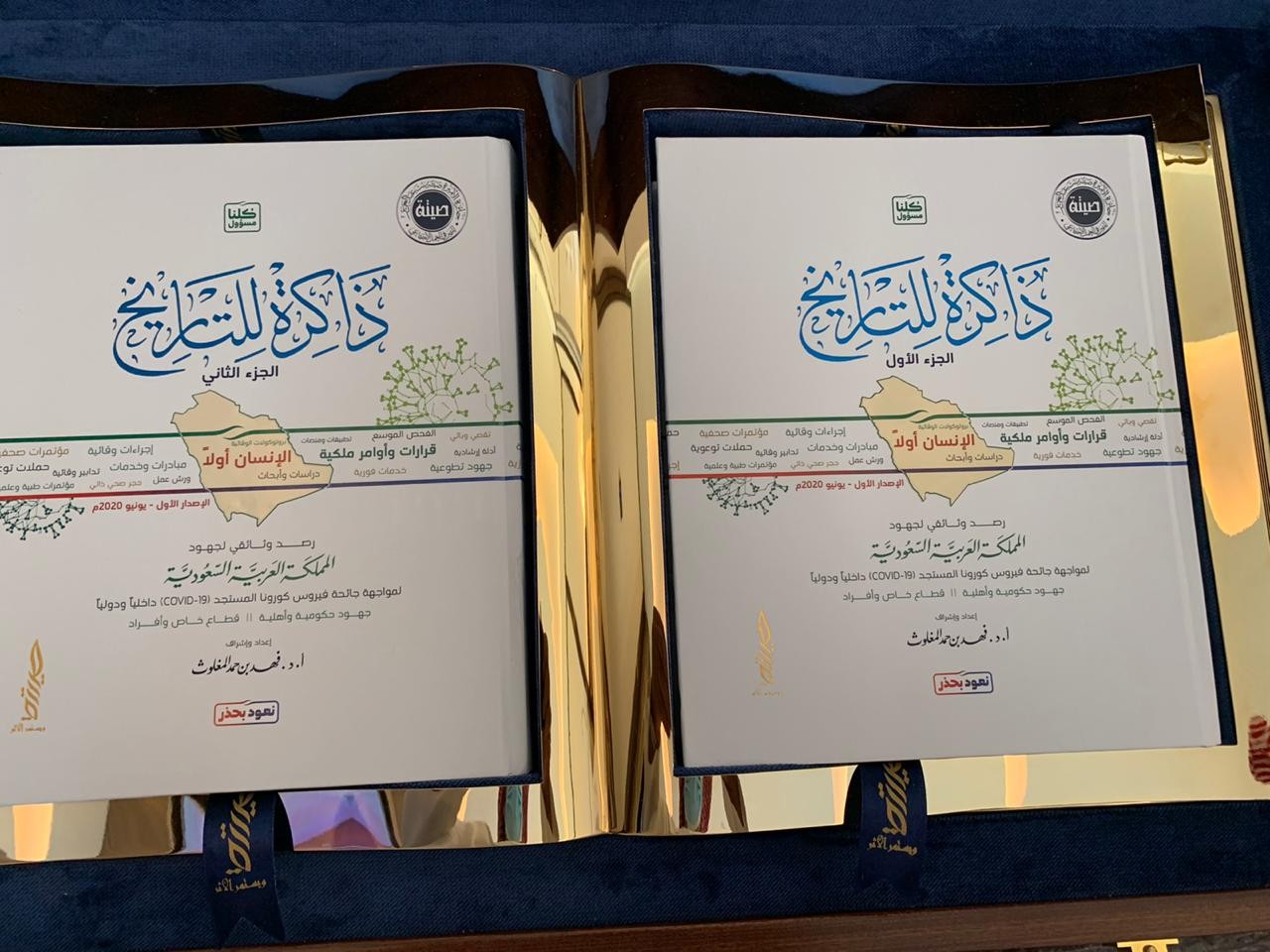 .. إن هذا الكتاب سوف يكون مرجعا مهما يحكي قصة التلاحم والتفاني ونكران الذات التي اظهرها أبناء السعودية لمواجهة كورونا في ظل قيادة وحكمة خادم الحرمين الشريفين الملك سلمان بن عبدالعزيز آل سعود وسمو ولي عهده الأمين صاحب السمو الملكي الأمير محمد بن سلمان إنه سفر وطني خرج إلى الوجود في زمن الكورونا.