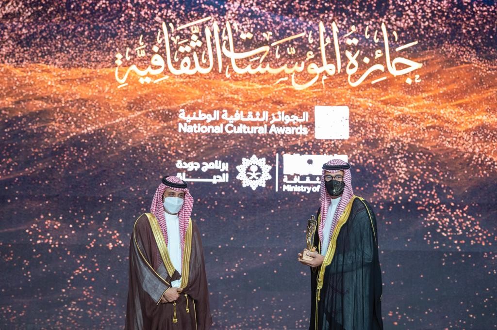 حصد مركز الملك عبد العزيز الثقافي العالمي (إثراء)، اليوم على جائزة "المؤسّسات الثقافية" التي أقامتها وزارة الثقافة لعام 2021، في الحفل الختامي للجوائز الثقافية والوطنية في العاصمة الرياض، حيث تهدف الجائزة إلى إشهار المؤسسات الثقافية في القطاعين الخاص وغير الربحي، وتكريمها بناء على أدائهما الذي يعزز دور القطاع الثقافي في المملكة العربية السعودية، وذلك من خلال الأنشطة والمبادرات النوعية التي تقدمها للمجتمع؛ مما يسهم في تحقيق الأهداف المرتبطة بالثقافة في رؤية المملكة 2030.