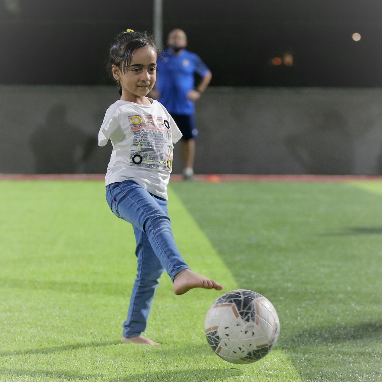 شاركت الطفلة "حوراء البخيت" 5 سنوات المولودة بدون ذراعين في البرنامج الصحي "ساعة رياضية" الذي يقيمه النادي على مدار شهرين متتاليين.