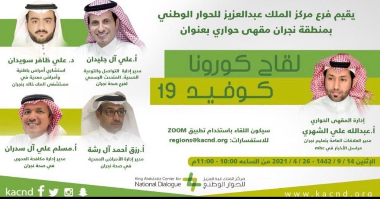الحوار الوطني بنجران يقيم مقهى حواري بعنوان لقاح كورونا كوفيد-١٩