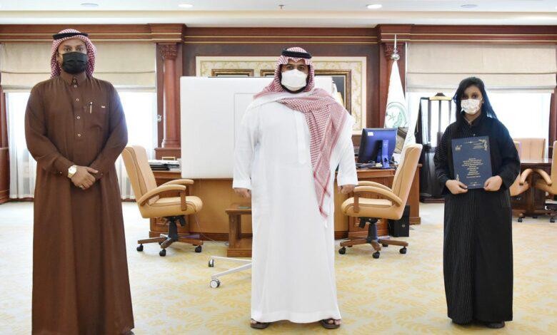 سمو نائب أمير منطقة جازان يكرم أصغر مؤلفة الطالبة دلع مدخلي