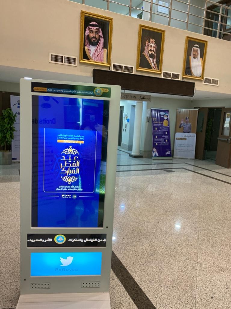 شارك فرع الرئاسة العامة لهيئة الأمر بالمعروف والنهي عن المنكر بمنطقة نجران  بمحتوى توعوي في الأسواق والأماكن العامة بالتعاون مع الجهات الحكومية الأخرى والمجمعات التجارية من خلال عرض إصدارات الرئاسة العامة على الشاشات الإلكترونية واللوحات الثابتة، وذلك ضمن الأعمال التوعوية للتذكير بفضل صيام الست من شوال وتهنئة المجتمع بحلول عيد الفطر المبارك.