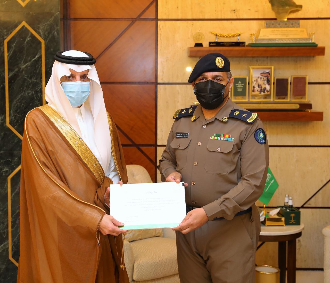 وكرم سموه العقيد فيصل بن سليمان الشهري مدير الإدارة العامة للتميز المؤسسي بمديرية الدفاع المدني بالمنطقة الشرقية كما كرم سموه المقدم عبدالهادي بن علي الشهراني مدير إدارة التوعية الوقائية والمتحدث الرسمي للمديرية بالمنطقة الشرقية.