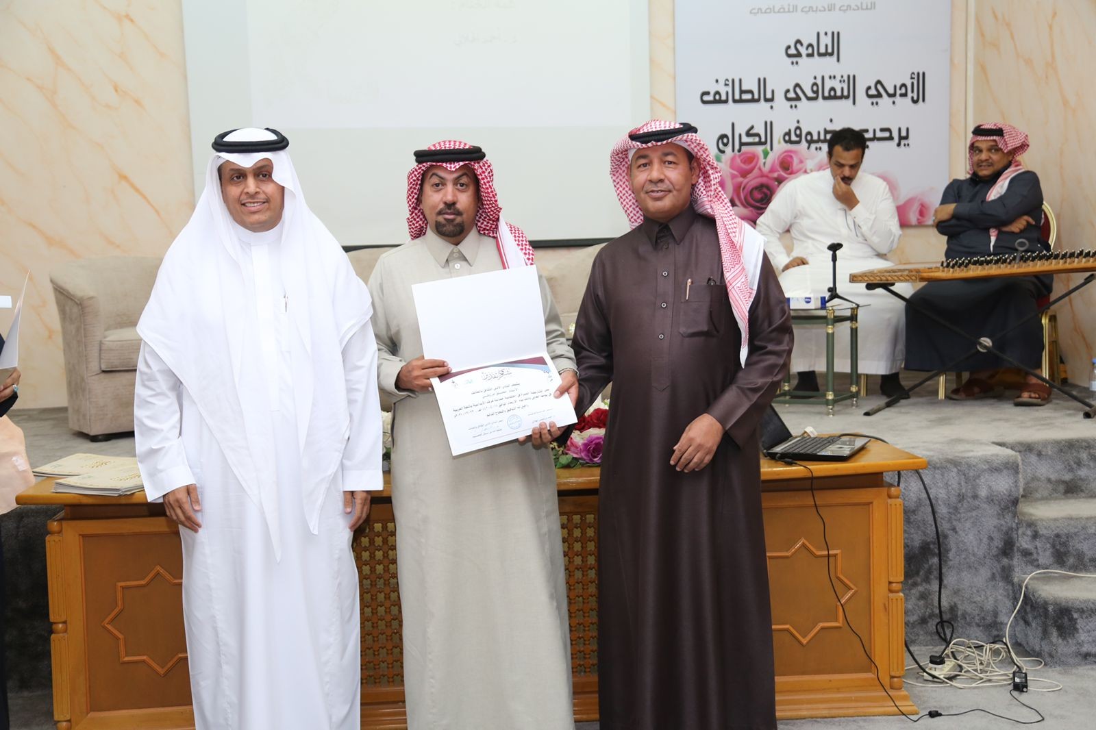 ألقى بعد ذلك الشاعر عايض الثبيتي والشاعر عادل الحصيني قصيدتين شعريتين بهذه المناسبة نالت استحسان وإعجاب الحضور وقد استمع الحضور بين فقرات الاحتفائية لوصلات موسيقية على آلتي العود والقانون للعازفين عدي القرشي ومحمد الشهري كما تم تدشين كتاب الطائف أقلام وألوان تشكيلية الذي طبع في النادي مؤخرا من جمع وإعداد الأستاذة فاطمة الشريف وقدمت فقرة للحديث عن مواقف وذكريات للمبتعثين من قبل الدكتورة فاطمة الحصيني والأستاذ محمد سعد الأسمري فيما قدمت معلقة فرقد الخاصة باللغة العربية والتي كتبت من قبل شعراء الجماعة وأداء عضوي الجماعة الأستاذة صباح العمري و الأستاذ عبدالله الأسمري بعد ذلك فتح الباب للمداخلات حيث تداخل كل من الدكتور فوزي خضر والدكتور صالح الثبيتي والأستاذة صباح العمري والأستاذة عائشة العصري والدكتورة فاطمة غزالي والأستاذة فاطمة الشريف ، وفي نهاية الاحتفائية تم تكريم المشاركين من قبل رئيس النادي عطا الله الجعيد بشهادات تقديرية .