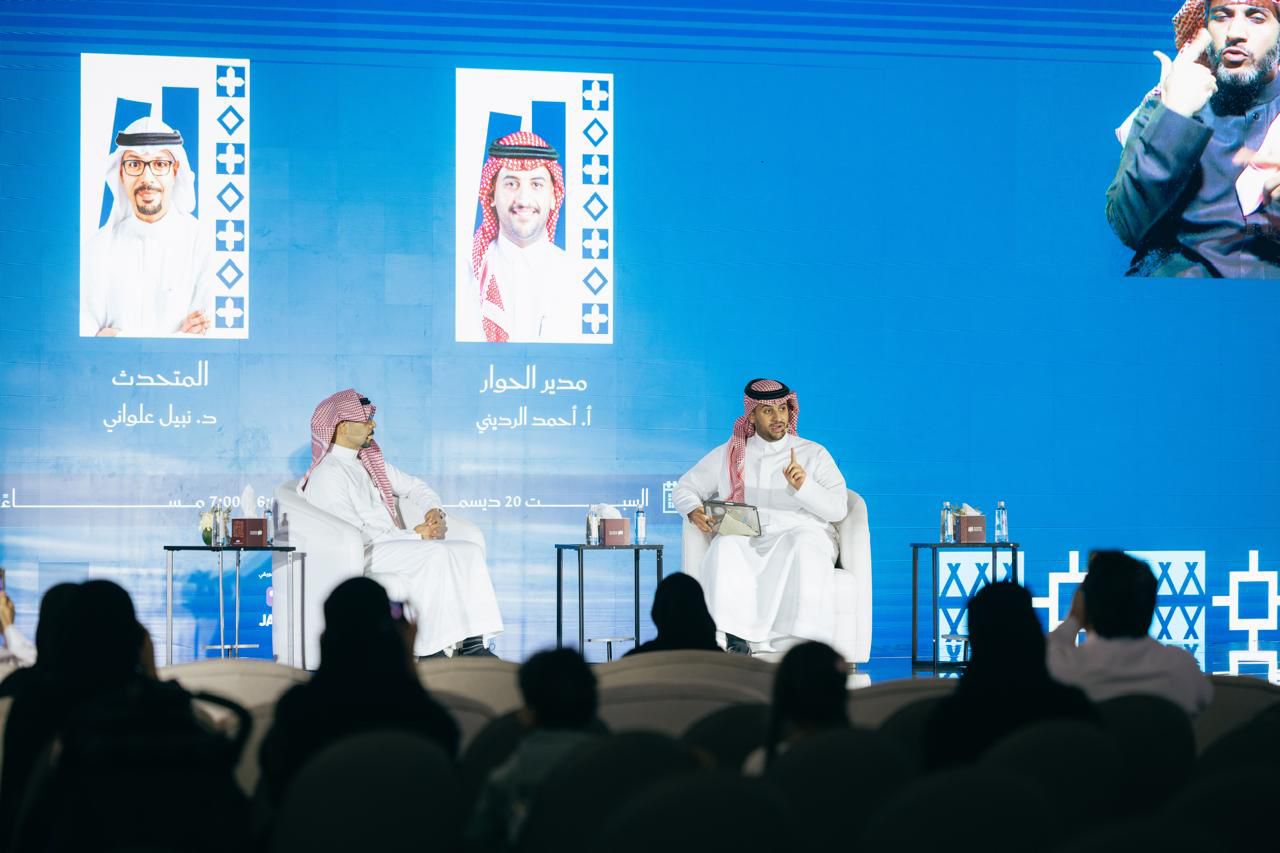 نظم معرض جدة للكتاب 2025، ندوة حوارية بعنوان "كيف للمدن أن تحكي قصتها؟" تحدث فيها الدكتور نبيل علواني وأدارها أحمد الرديني.