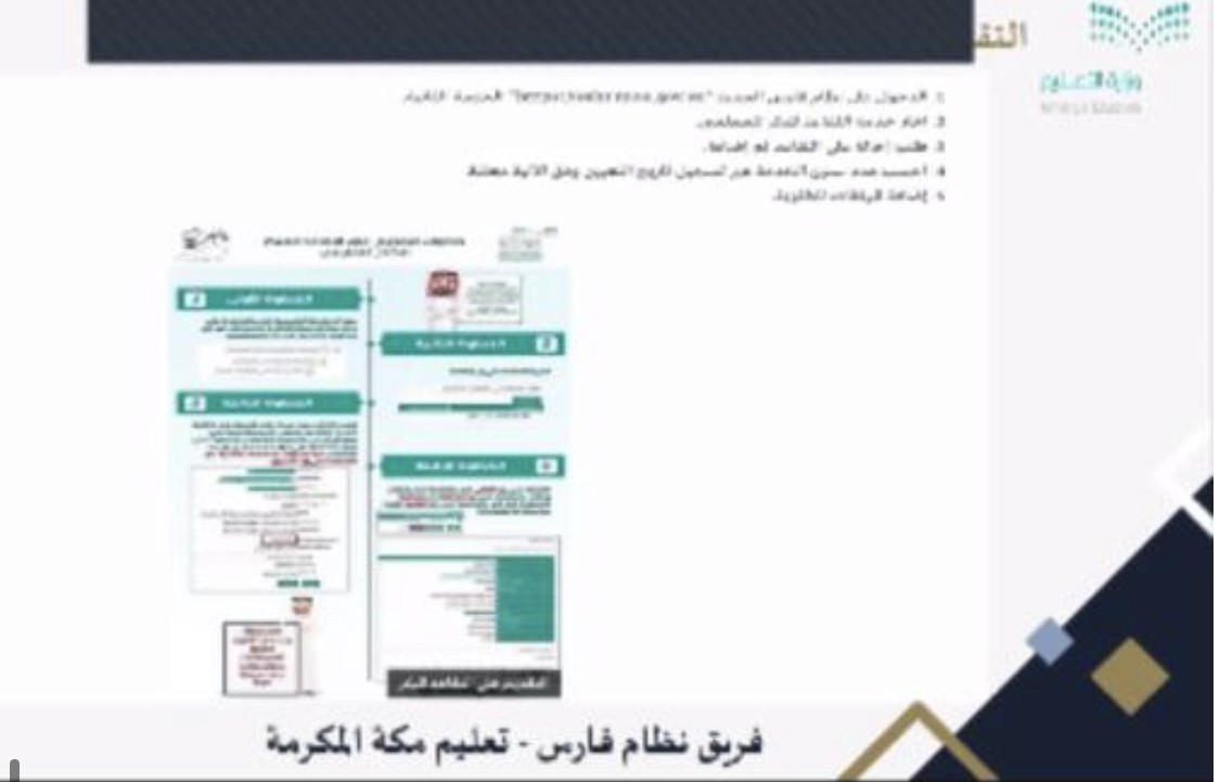 نفذت الإدارة العامة للتعليم بمنطقة مكة المكرمة ممثلة في نظام فارس دورة تدريبية لمنسوبيها بعنوان "الخدمة الذاتية للتكليف والتقاعد المبكر" وذلك ضمن برامجها التقنية ( التقنية الحديثة ) الخاصة بالتحول الرقمي التي تتماشى مع رؤية الدولة 2030 ، قدمتها المدربة وفاء عمر المحمادي يوم الأحد الموافق 1443/2/26هـ بإدارة التدريب عبر برنامج الزوم .