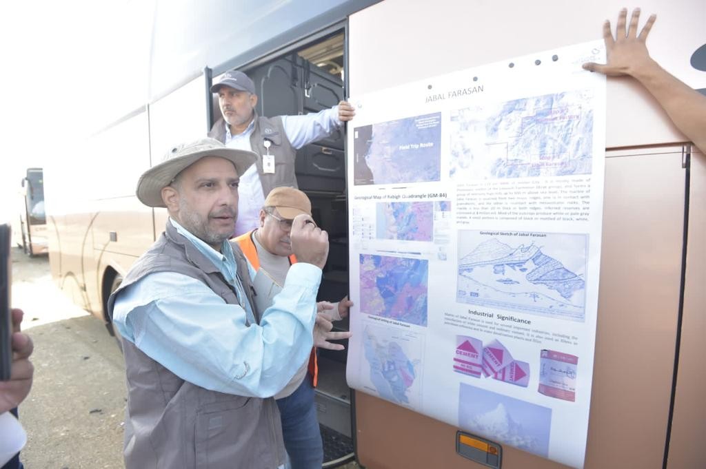 والأستاذ غازي كتو كبير الجيولوجيين في إدارة التنقيب بهيئة المساحة الجيولوجية، وتأتي الجولة ضمن برنامج أعمال "قمة مستقبل المعادن" التي ستنعقد في مدينة الرياض تحت رعاية كريمة من خادم الحرمين الشريفين، الملك سلمان بن عبد العزيز آل سعود -حفظه الله- خلال شهر يناير من العام المقبل.