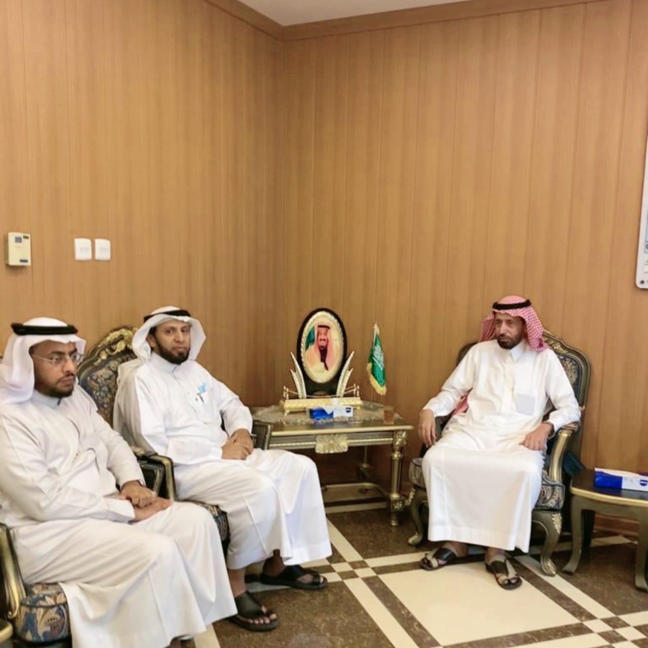 التقى محافظ محايل  علي إبراهيم الفلقي  في مقر المحافظة اليوم رئيس جمعية رعاية المعاقين بمحافظة محايل    علي محسن العداوي يرافقه رئيس لجنة التنمية الاجتماعية  عمر السيد