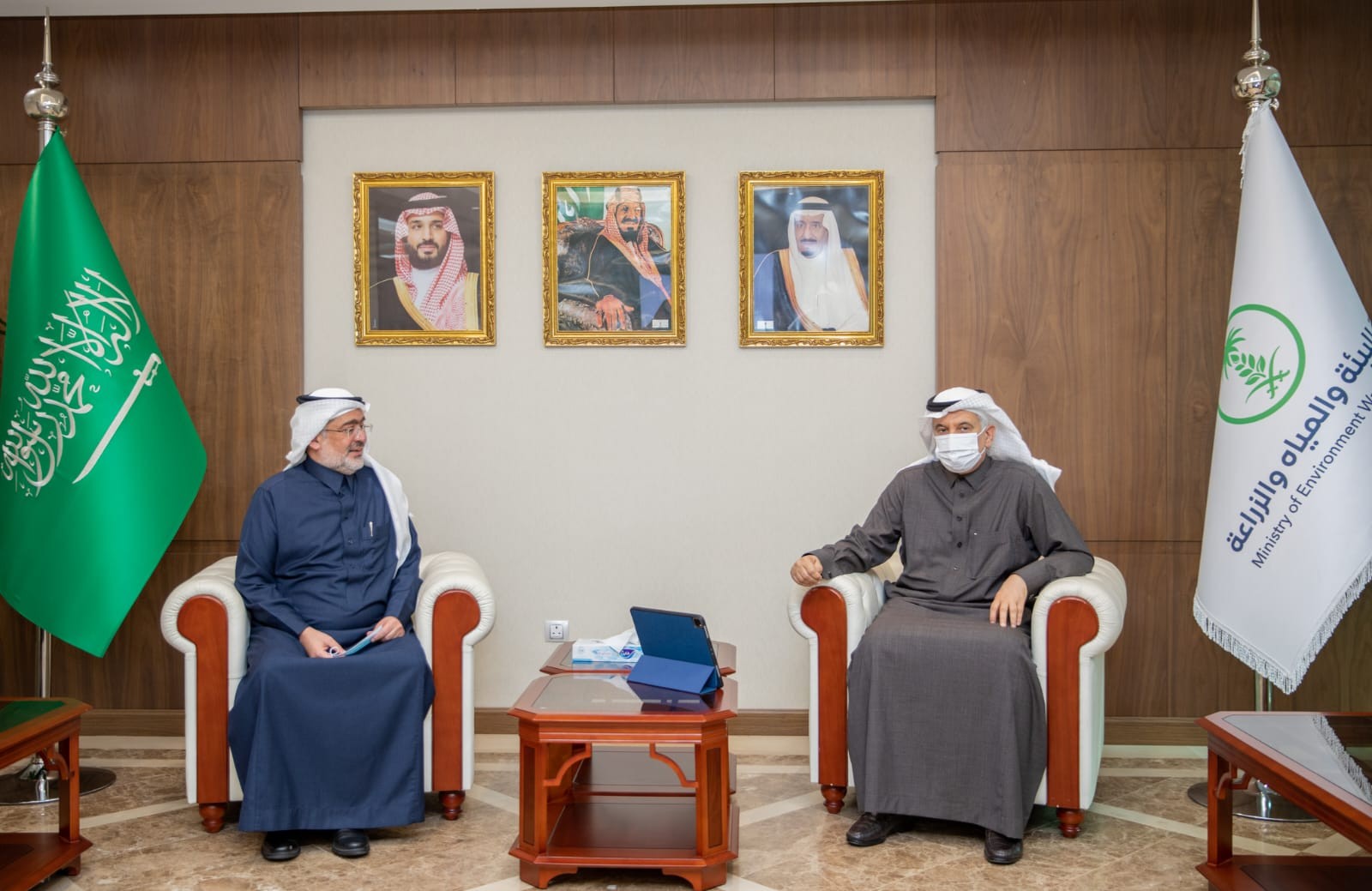 دشن معالي وزير البيئة والمياه والزراعة المهندس عبدالرحمن بن عبدالمحسن الفضلي شعار اللجنة الوطنية للموارد الوراثية النباتية للأغذية والزراعة ، بحضور وكيل الوزارة للزراعة المهندس أحمد بن صالح العيادة وأعضاء اللجنة الوطنية.