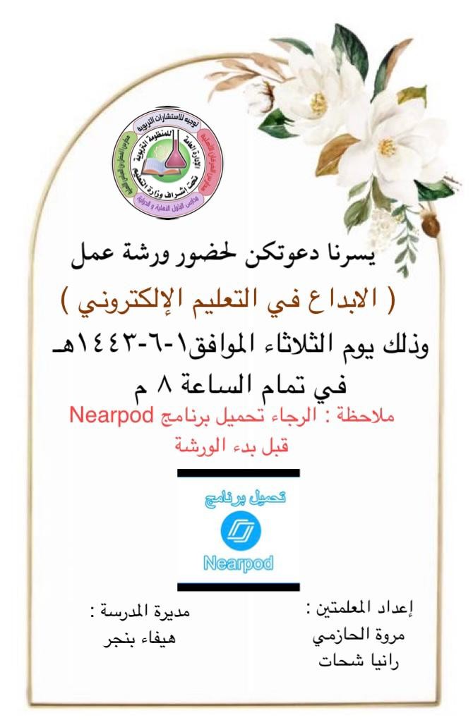 هدفت الورشة إلى تحفيز الإبداع في إنشاء وتقديم محتوى تعليمي متكامل من خلال دمج الدروس والأنشطة التفاعلية وتقديمها للطلبة في قالب ممتع والاستعانة بها في العملية التعليمية كما تم عمل منشورات وإعلان للورشة عن طريق تطبيق الواتس اب وإرساله في قروب العمل.