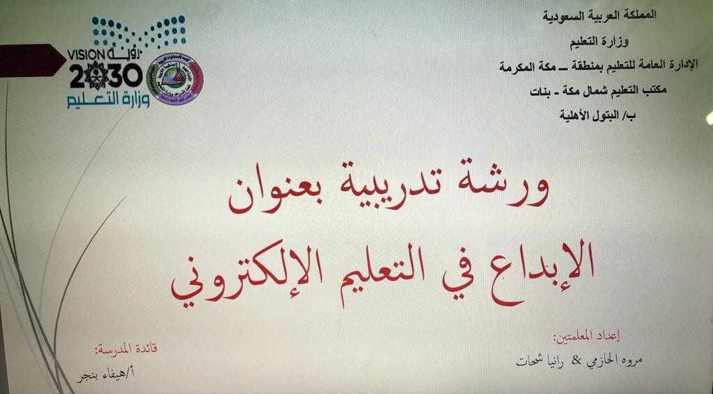الإبداع في التعليم الإلكتروني ورشة تدريبية بابتدائية البتول الأهلية بمكة