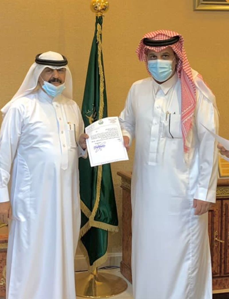 كرم محافظ المخواة الأستاذ غلاب بن غالب أبو خشيم أعضاء المجلس المحلي للفترة الخامسة والمنتهية عضويتهم .