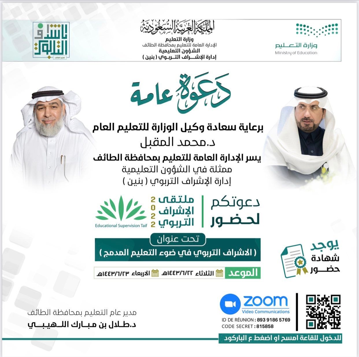 يذكر أن اللقاء حضره مساعد المدير العام للتعليم بالطائف للشؤون التعليمية بنين وعدد من القيادات التعليمية وما يزيد عن 1000 مشارك من المهتمين والخبراء من مختلف مناطق المملكة.