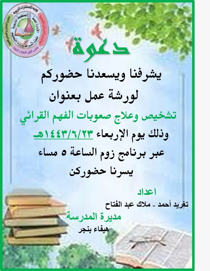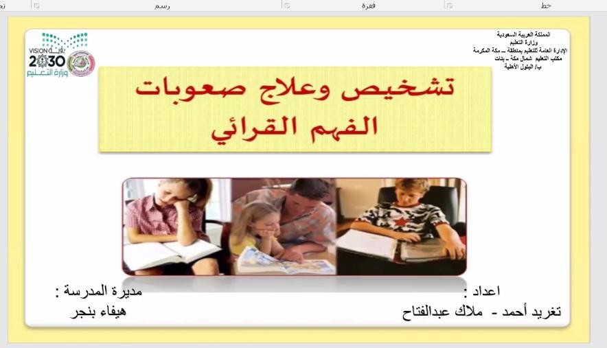 تشخيص وعلاج صعوبات الفهم القرائي ورشة تدريبية بابتدائية البتول الأهلية بمكة