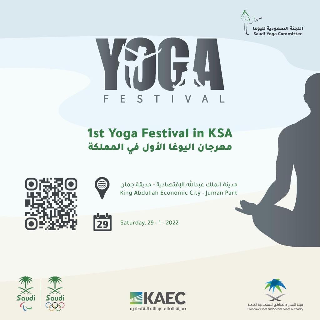 تنظم اللجنة السعودية لليوغا علي شواطئ مدينة الملك عبدالله الإقتصادية، أول مهرجان لرياضة اليوغا في المملكة العربية السعودية  يوم السبت الموافق 29 يناير الجاري حيث سيتمكن محبي و ممارسي رياضة اليوغا الإنضمام و ممارسة اليوغا و مشاهدة العروض الخاصة برياضة اليوغا مع مشاهير المدربين في المملكة.