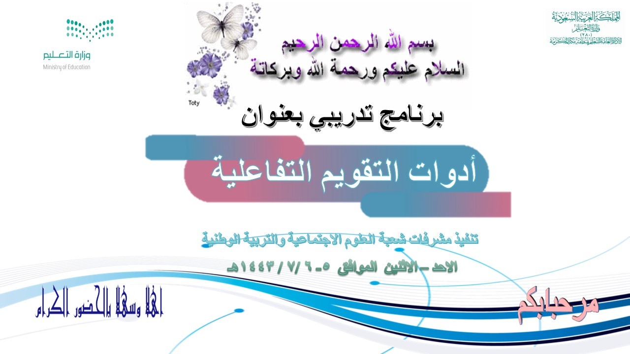 نفذت الإدارة العامة للتعليم بمنطقة مكة المكرمة ممثلة في مكتب تعليم شرق مكةالبرنامج التدريبي "أدوات التقويم التفاعلية"يومي الأحد والاثنين الموافق 5-6 /7/ 1443هـ ، نفذته مشرفات العلوم الاجتماعية والوطنية تحت إشراف مديرة المكتب أمل باجابر.