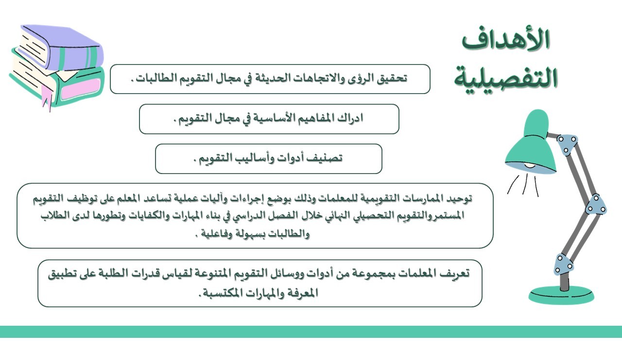 استهدف البرنامج 30معلمة من معلمات العلوم الاجتماعية والوطنية للمرحلتين المتوسطة والثانوية وذلك بهدف تنمية قدرات ومهارات ومعارف المعلمات في مجال التقويم بشكل فاعل وتكوين اتجاهات إيجابية نحوه وتحقيق الرؤى والاتجاهات الحديثة في محال تقويم الطالبات وإدراك المفاهيم الأساسية في مجال التقويم وتصنيف ادوات واساليب التقويم.