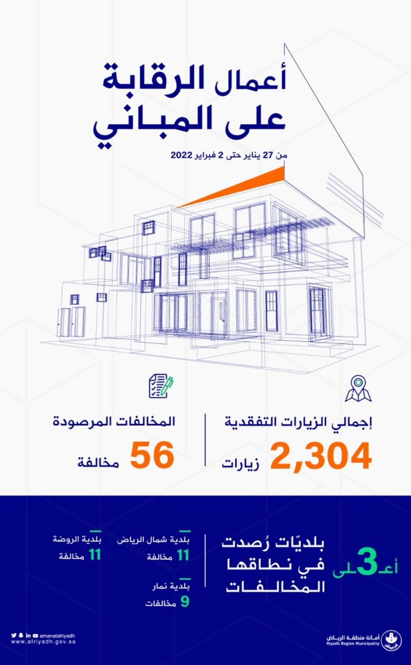 "أمانة الرياض" ترصد 56 مخالفة خلال جولاتها التفقدية للرقابة على المباني