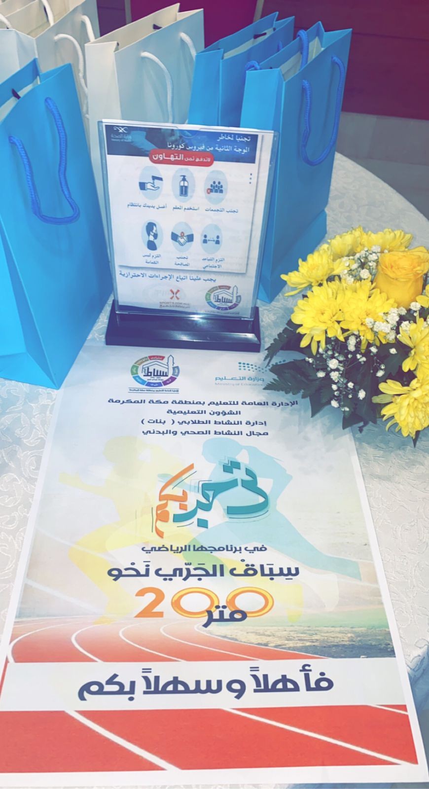 أطلقت الإدارة العامة للتعليم بمنطقة مكة المكرمة ممثلة في إدارة نشاط الطالبات - مجال النشاط الصحي والبدني - التصفيات الختامية للبرنامج الرياضي "سباق الجري نحو ٢٠٠ متر" بالاستاد الرياضي بجامعة أم القرى بالعابدية اليوم الخميس الموافق ١٤٤٣/٧/٩هـ وذلك بحضور مساعدة مدير عام التعليم للشؤون التعليمية أ. لمياء بنت عبدالعزيز بشاوري، نفذته منسوبات مجال النشاط الصحي والبدني بالتعاون مع جامعة أم القرى ومساندة إدارة الإشراف التربوي وباستضافة الدكتورة نهلة هاشم حريري وكيلة عميد شؤون الطلاب (شطر الطالبات) و الأستاذة منال حسنين مشرفة على وحدة الأنشطة الرياضية.