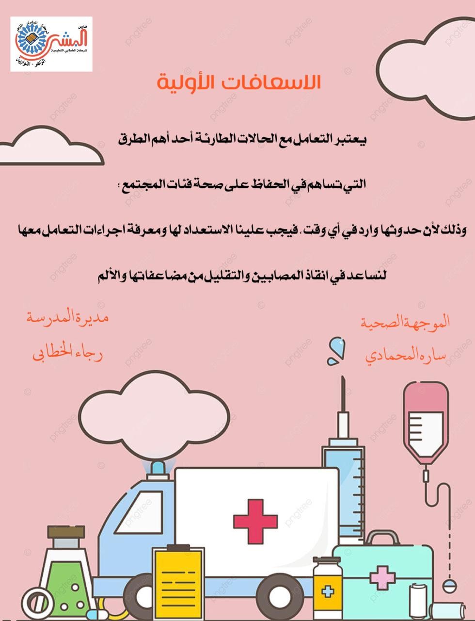 وذلك بهدف التثقيف الصحي للكادر بالمدرسة، والتوعية بضرورة التعامل مع المصابين والتقليل من المضاعفات التي قد تصيبهم هذا وقد نُفذ البرنامج من خلال عمل نشرات للإسعافات الأولية، صاحبها عرض فيديوهات إرشادية، بالإضافة إلى بث المنشورات على مواقع التواصل الاجتماعي.
