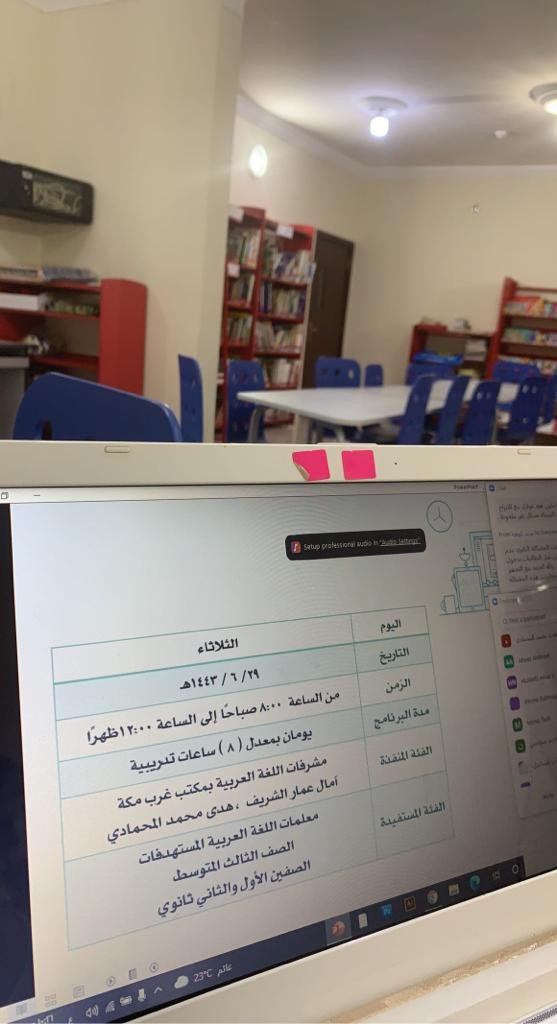 ومحاور اليوم الثاني : دور معلمة اللغة العربية في الاختبار الدولي PISA.خطة إجرائية بعنوان : خطوات نحو الإصلاح والتغيير لمعلمات اللغة العربية بمكتب تعليم غرب مكة لعام 1442/1443هـ ( الصف الثالث المتوسط ، الصفين الأول والثاني ثانوي )، تطبيقات عملية محاكية لمهارات بيزا في ضوء منهاج اللغة العربية.