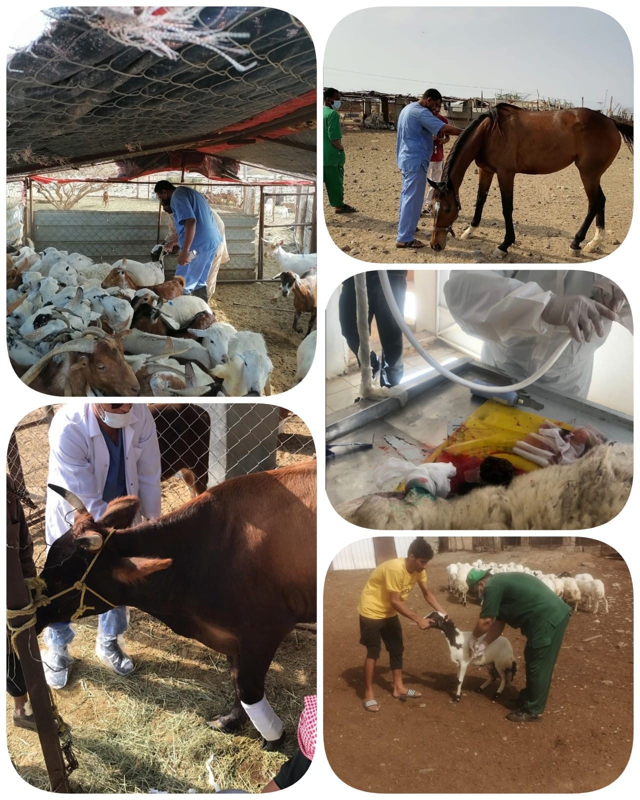 وفي رجال المع قام المركز بمتابعة عدد من الحالات المرضية وتطعيم القطيع بلقاح التسمم المعوي كجانب من الخدمات المقدمة من قسم الثروة الحيوانية, كما قامت الوحدة البيطرية بمركز الحريضة تحصين ضد مرض حمى الوادي المتصدع والتسمم المعوي ومعالجة عدد من الأفراس في الحقل ورش للحظائر.