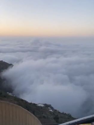 في مشهد بديع يلفت انتباه عشاق الطبيعة وجمالها، وثقت مقاطع فيديو لحظة احتضان السحب لجبال الداير شرق جازان.