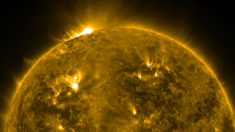 التوهج الشمسي هو انفجار على الشمس يحدث عندما يتم إطلاق الطاقة المخزنة في الحقول المغناطيسية المتشابكة (عادة فوق البقع الشمسية) فجأة، حيث تنتج التوهجات دفعة من الإشعاع عبر الطيف الكهرومغناطيسي، من موجات الراديو إلى الأشعة السينية وأشعة جاما.