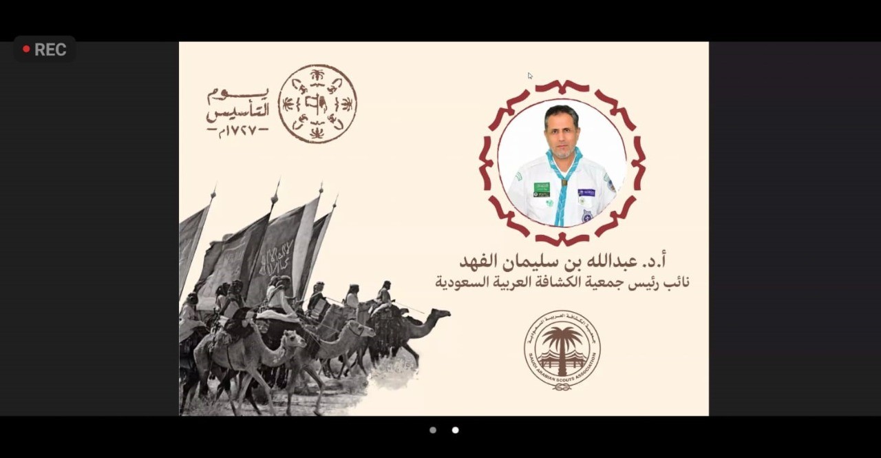 أقامت جمعية الكشافة العربية السعودية، اليوم (عبر الاتصال المرئي) إحتفائية خاصة بمناسبة يوم التأسيس الذي يوافق 22 من فبراير من كل عام، ودشنت الجمعية خلال الاحتفاء "المشروع الكشفي للاحتفاء بـ يوم التأسيس" بحضور نائب رئيس الجمعية الدكتور عبدالله بن سليمان الفهد، الذي القى كلمة رفع من خلالها باسمه ونيابة عن كشافي المملكة من الجنسين ومن كافة المراحل أسمى آيات التهاني والتبريكات لخادم الحرمين الشريفين الملك سلمان بن عبدالعزيز آل سعود وسمو ولي عهده الأمين ـ حفظهما الله ـ بتلك المناسبة العزيزة، واكد أن هذا اليوم هو ذكرى لكل سعودي وسعودية يستلهمون فيه العبر والدروس لمسيرة كفاح وعمل كان ثمرته ما نعيشه اليوم من أمن وأمان وتنمية وازدهار، وأنها مناسبة وطنية يستحضر من خلالها الأجيال تضحيات الآباء والأجداد وما كابدوه من تحديات في سبيل بناء الوطن، وانها فرصة تتيح لنا تعريف كشافينا بتاريخ دولتهم العريق وحاضرها المشرق ومستقبلها الواعد في ظل قيادة حكيمة أرست قواعد النهضة ودعمت التنمية والأمن والرخاء.