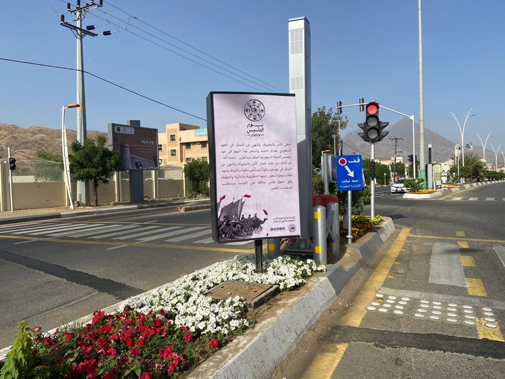 كما تضمنت المشاركة حضور ميداني وتوعوي من خلال الدوريات الميدانية وعرض محتوى الاحتفاء بذكرى يوم التأسيس من خلال اللوحات والشاشات الإلكترونية في الطرقات والأسواق والميادين العامة.